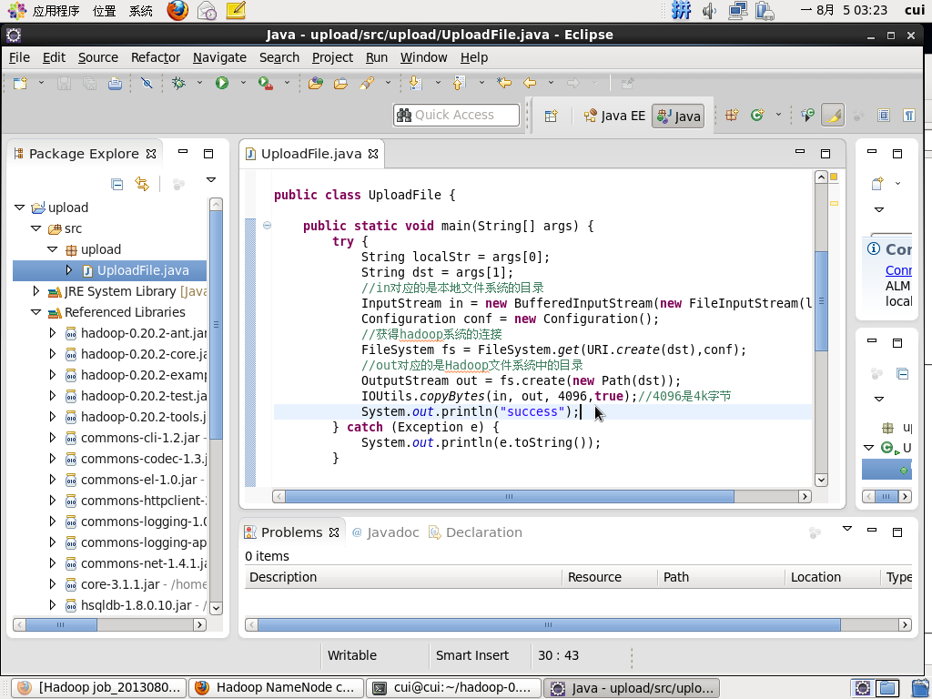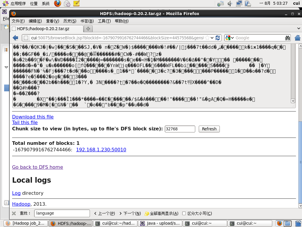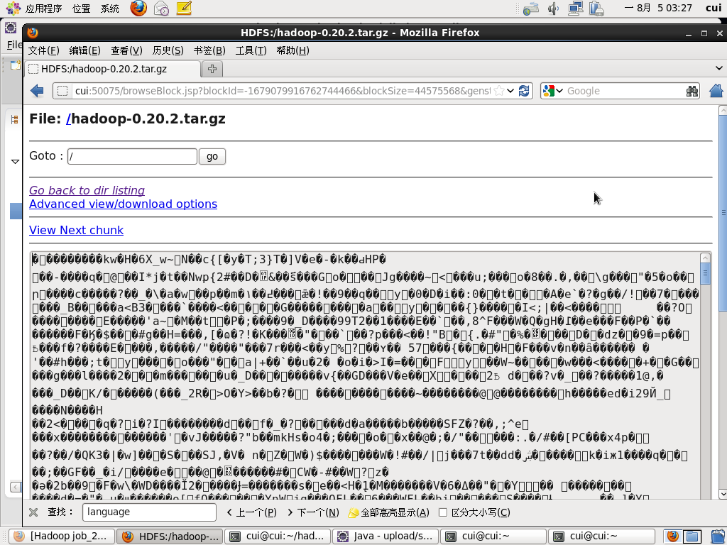 在hadoop文件系統中已經看到了hadoop-0.20.2.tar.gz了。