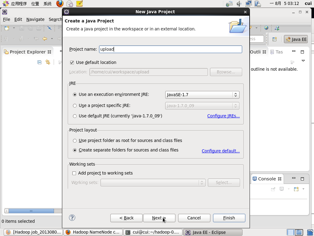 第一步:首先搭建java的編譯環境。創建一個Java Project工程,名為upload。