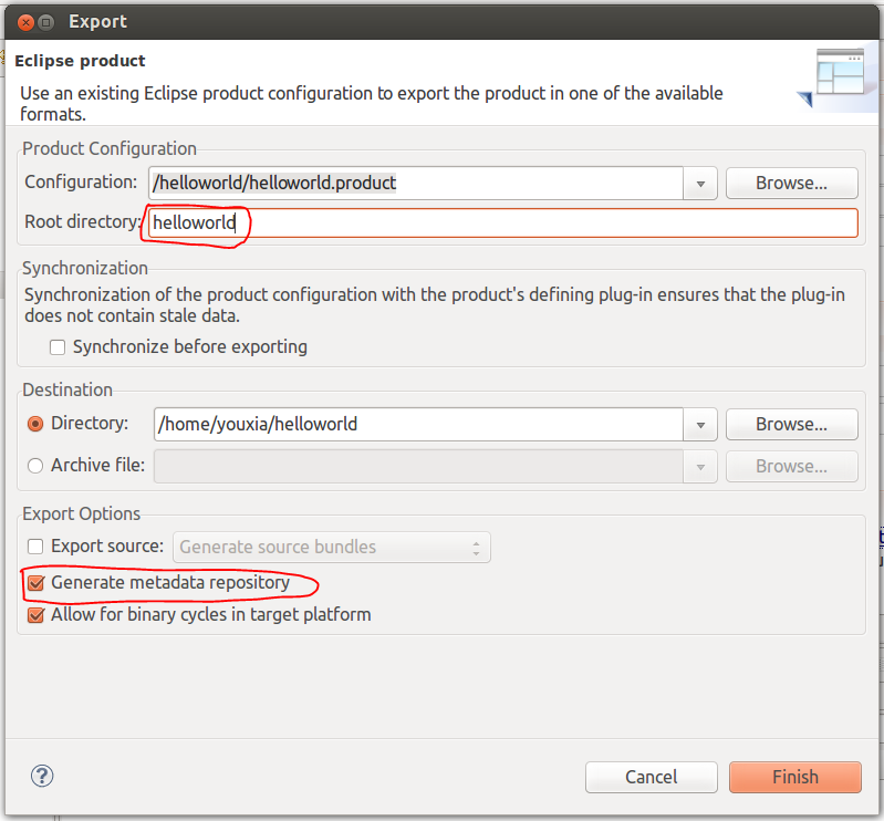 在導(dǎo)出Product的時(shí)候,選擇如下圖中的單選框和填寫(xiě)好根目錄: