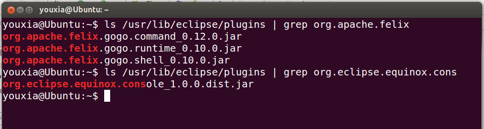 如果想按照Equinox的官方文檔啟動(dòng)OSGi框架的命令行,還得從Eclipse的安裝目錄找到如下幾個(gè)文件:
