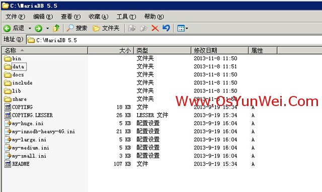 打開MariaDB安裝目錄C:/MariaDB 5.5可以看到跟MySQL目錄結構一致!