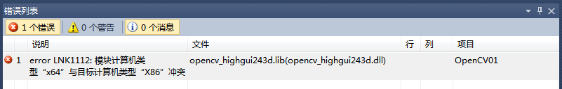 添加Lena.jpg文件到項目文件夾,運行該項目,報如下錯誤: