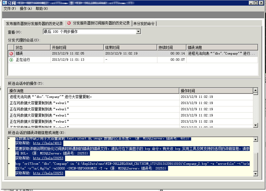 進程無法向表“"dbo"."Company"”進行大容量復制。 (源: MSSQL_REPL,錯誤號: MSSQL_REPL20037)