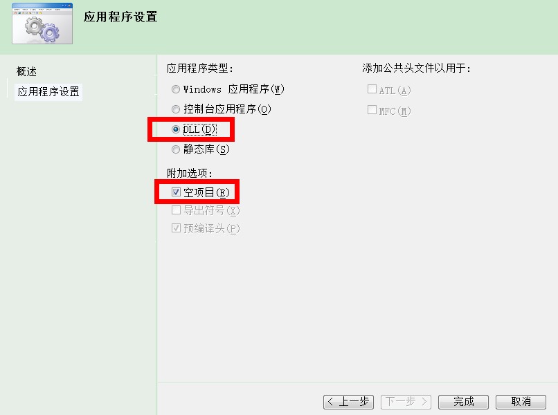1.2 再點確定-->下一步 : 選擇DLL , 空項目