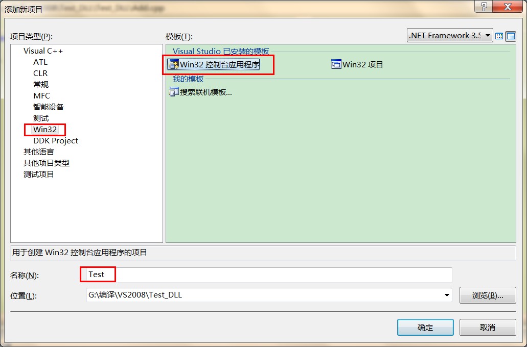然后選擇 win32-->win32控制臺應用程序-->空項目