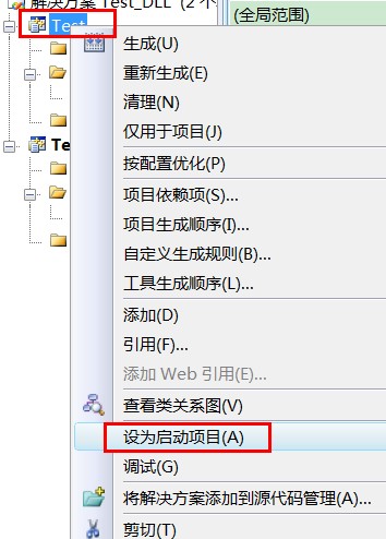 2.3 在工程Test右鍵-->設置為啟動項,這樣我們就能啟動Test來測試我們編譯的dll了 ^_^