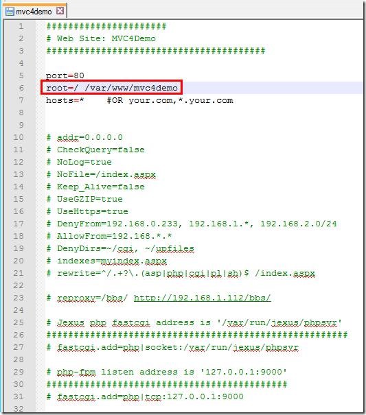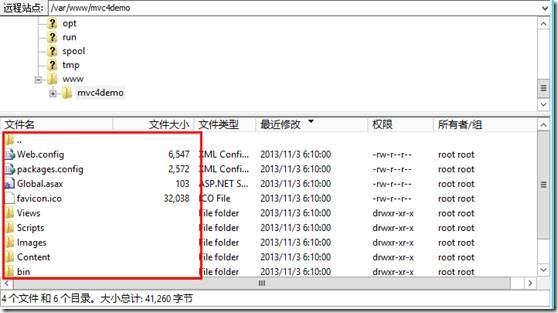 將剛才編譯好的mvc4demo的網站文件上傳到/var/www/mvc4demo下