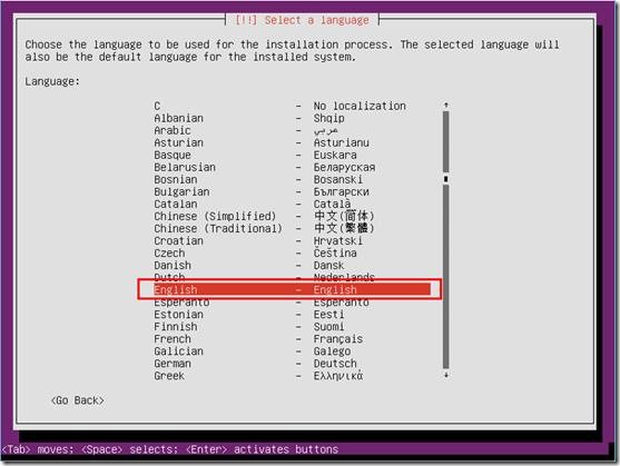 選擇默認的英文(強烈建議選英文,作為服務器后面會少很多麻煩,對支持中文應用完全是無問題的,完全不用擔心)