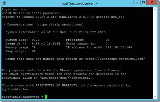 【注】虛擬機用戶名"jexus"或"root",密碼皆為"jexus"
