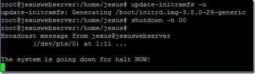 保存后,運行update-initramfs –u,并關閉系統 shutdown -h 00