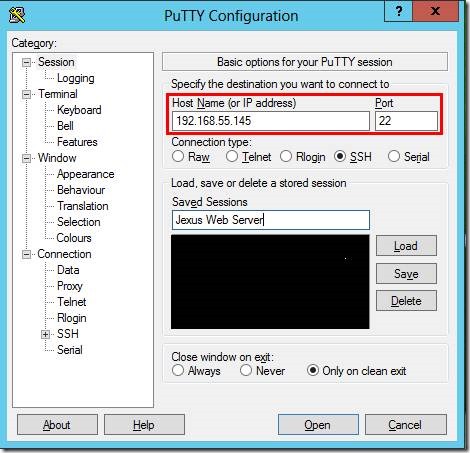 1) 使用putty連接(參考下載地址:http://the.earth.li/~sgtatham/putty/0.63/x86/putty-0.63-installer.exe)