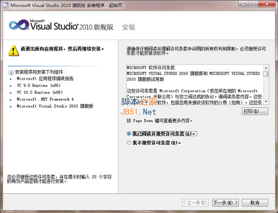 如果你下載的是 VS2010 英文版,共4個分卷,必須全部下載完成,然后執行 VS2010UltimTrial_4PartsTotal.part1.exe 進行安裝。