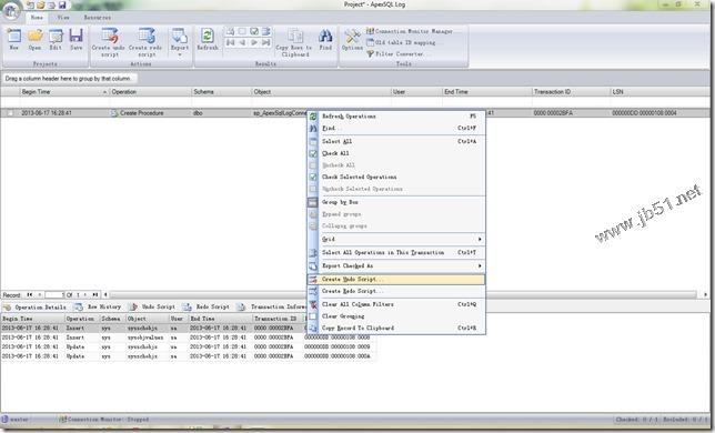 表格列出之前進行的操作,在進行誤操作的行上點擊鼠標右鍵會出現很多菜單,“Create Undo Script”就是創建一個恢復腳本: