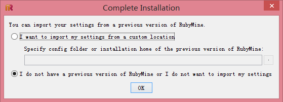 然后會顯示個“JetBrains RubyMine Intial Configruation”對話框,要求IDE的樣式,保持默認點OK就行,除非你有癖好。