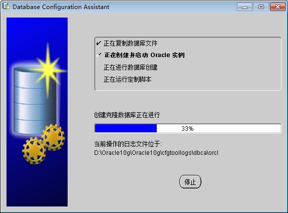 7、在安裝配置助手的時候會出現(xiàn)如下對話框,從中可以看到正在為我們的系統(tǒng)安裝數(shù)據(jù)庫實例,我們要做的就是等待了。