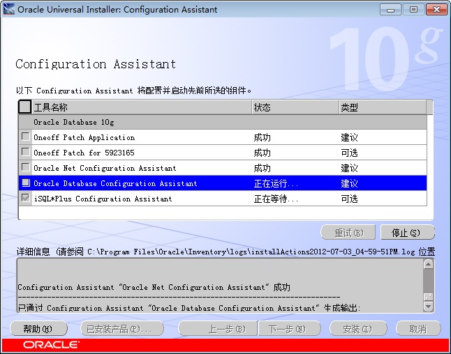 9、最后系統(tǒng)會提示Oracle10g的數(shù)據(jù)庫安裝成功。