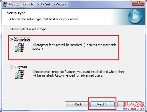 4、在出現的安裝類型頁面中,我設置安裝的類型為完整安裝,單擊“next”繼續安裝,如圖所示: