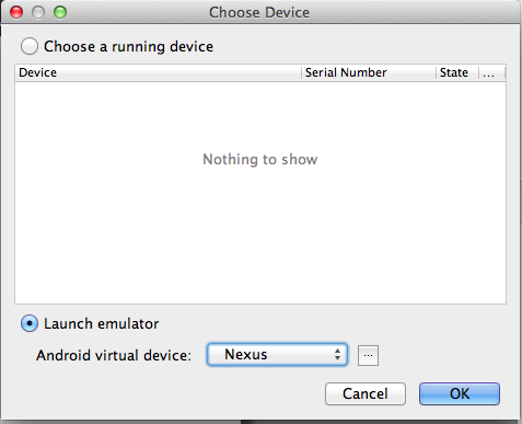 "/Applications/Android Studio.app/sdk/tools/emulator" -avd Nexus -netspeed full -netdelay none