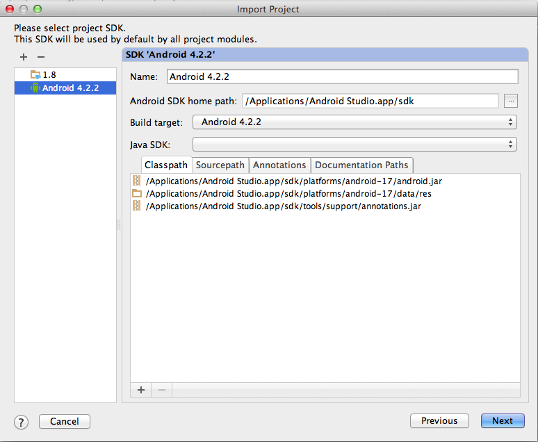 向?qū)Щ旧虾虴clipse差不多。不過這個創(chuàng)建過程可比Eclipse上長的多。主要是因為從gradle上下載。