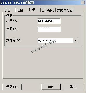 三、打開登錄信息,輸入MYSQL數據庫服務器相關參數: