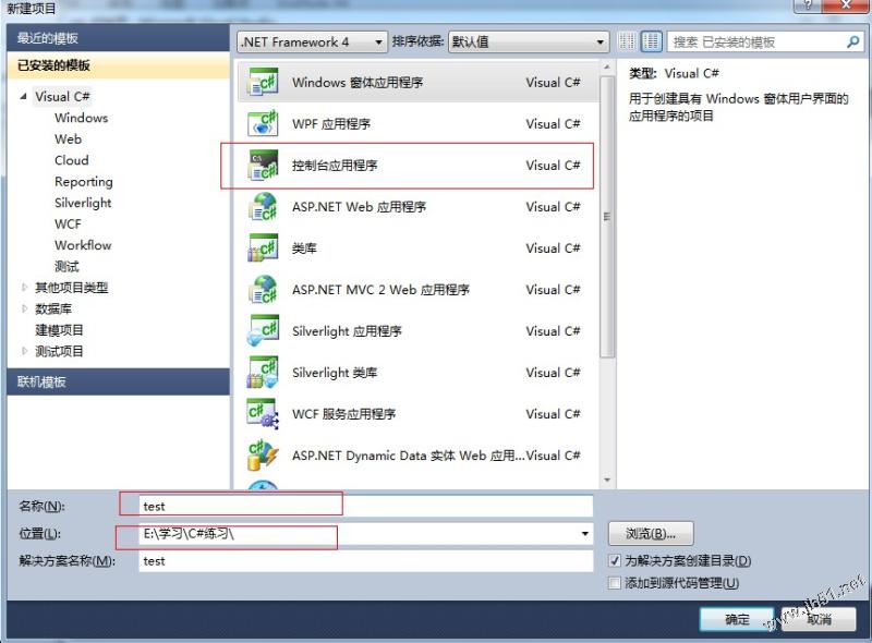 如上圖,選擇控制臺應用程序,根據需要也可以選擇窗體應用程序或webz應用程序,然后命名,選擇保存路徑即可