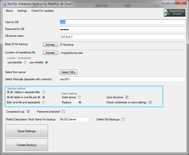 Base Dir for backup 用來指定備份文件放置的目錄,這個軟件會自動在備份文件中嵌入備份的日期。
