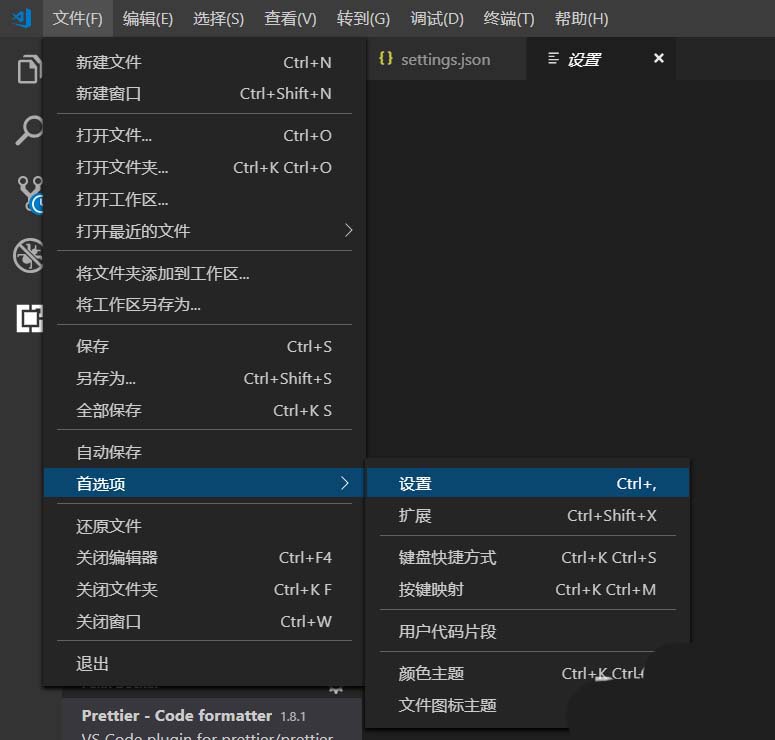 3、在搜索條搜索prettier,點擊 在settings中編輯