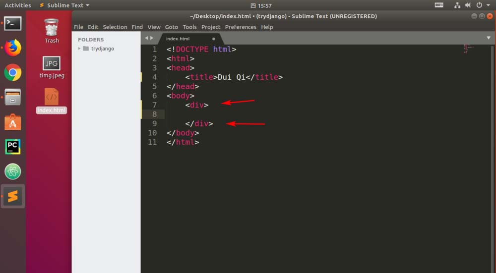 3、現在body里面寫入<div>標簽,用于分區。