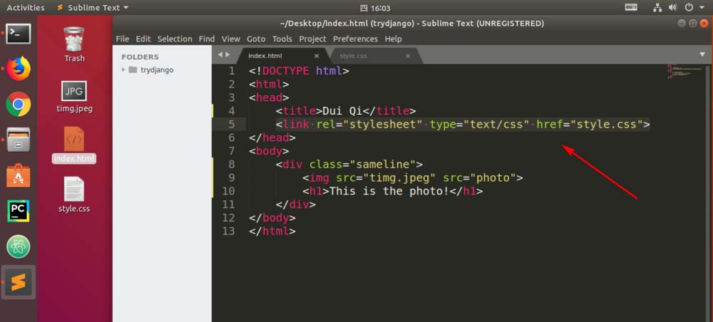 6、然后我們需要新建一個css文件,并且在html文件里面用link指向css文件。