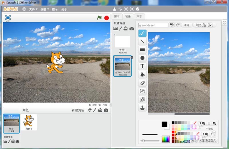 8、我們就在scratch中創(chuàng)建好了一個沙漠場景。