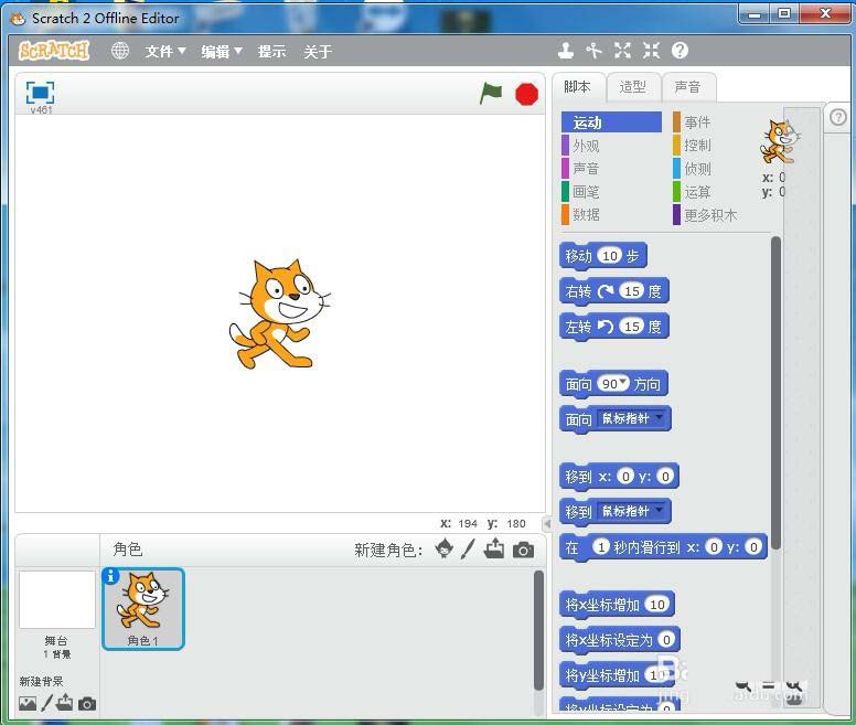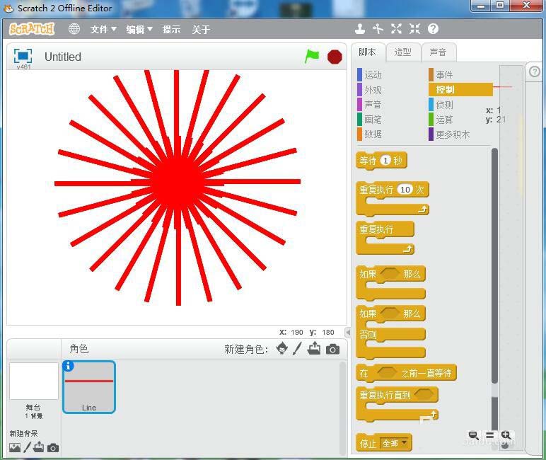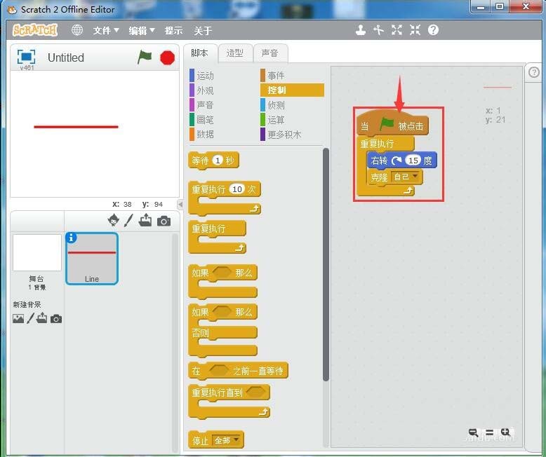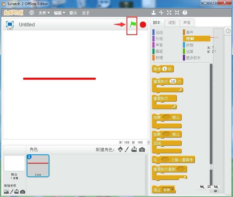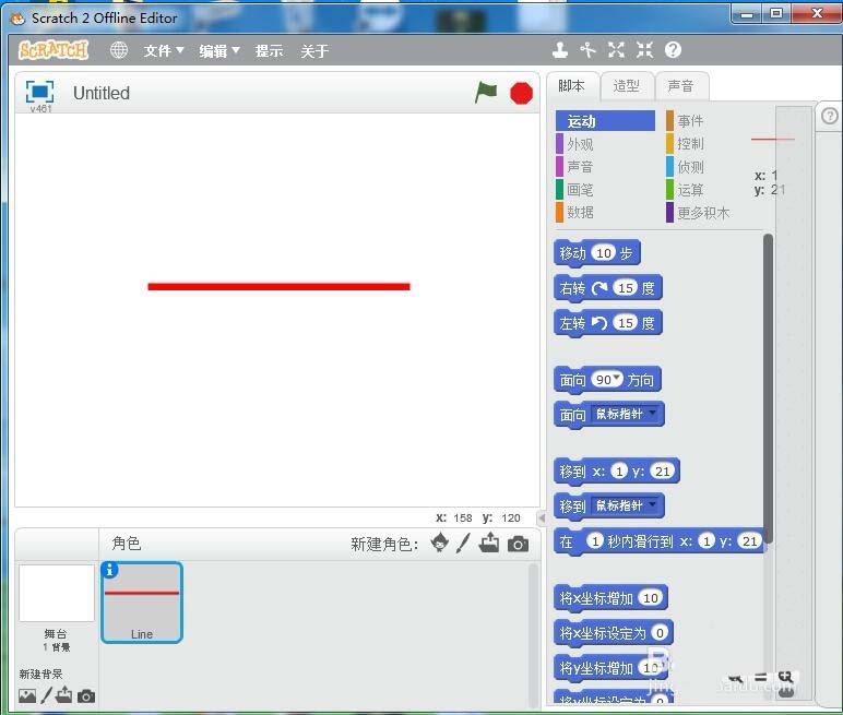 6、在scratch中創(chuàng)建好了一個(gè)直線角色;