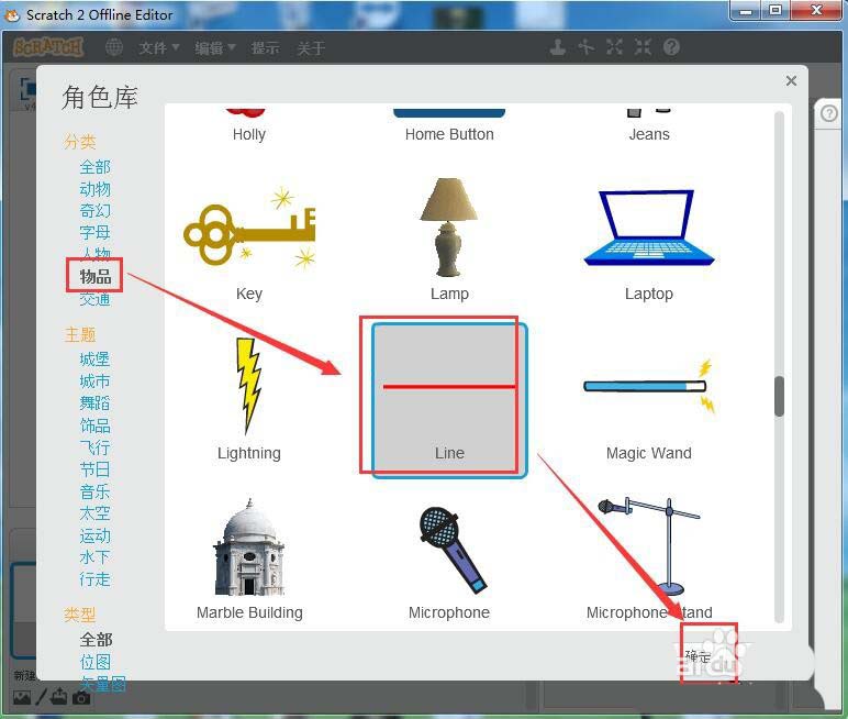 5、在物品類別找到并選中需要的直線,然后按確定;