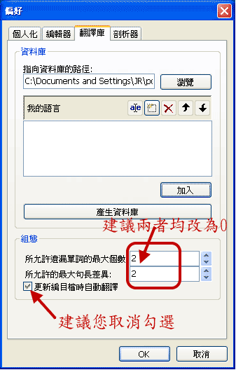 編輯器與剖析器不用去動,而翻譯庫建議您作如下的動作。