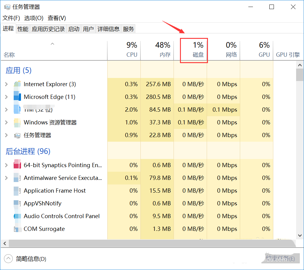 7、重啟后,我么看看磁盤使用率已經(jīng)降下來(lái)了,如下圖所示