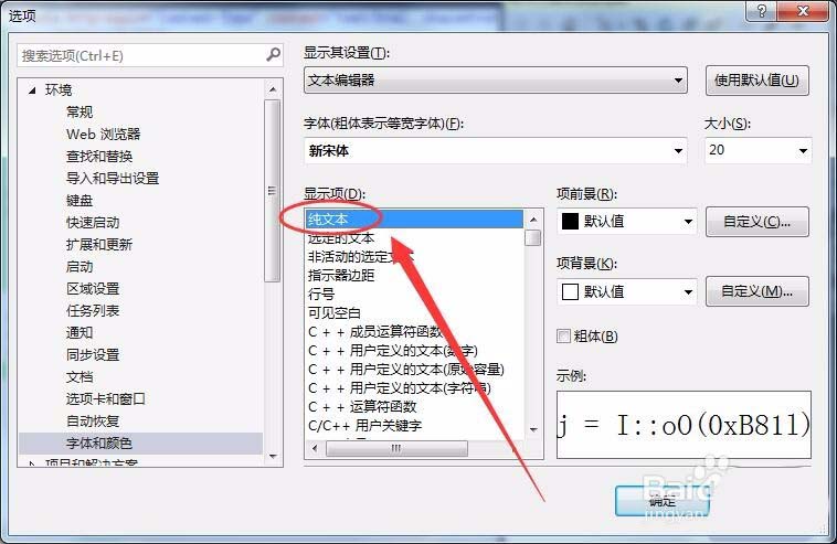 8、顯示項中,可以選擇修改設置的項目,本例以純文本為例。