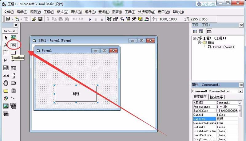 3、接著,選擇工具箱中的TextBox按鈕,如下圖所示。