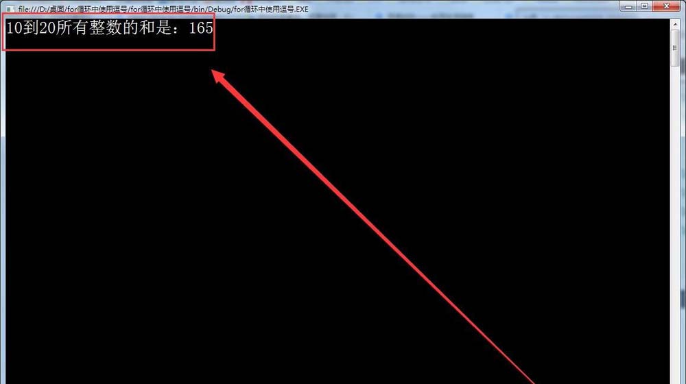 4、最后,在窗口中輸出10到20所有整數的和,如下圖所示。