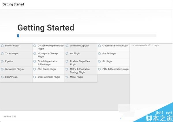 3、安裝后程序會自動創建了一個windows服務,Jenkins默認使用的端口是8080,在瀏覽器中輸入地址:http://localhost:8080/,可打開軟件安裝界面,如下圖所示: