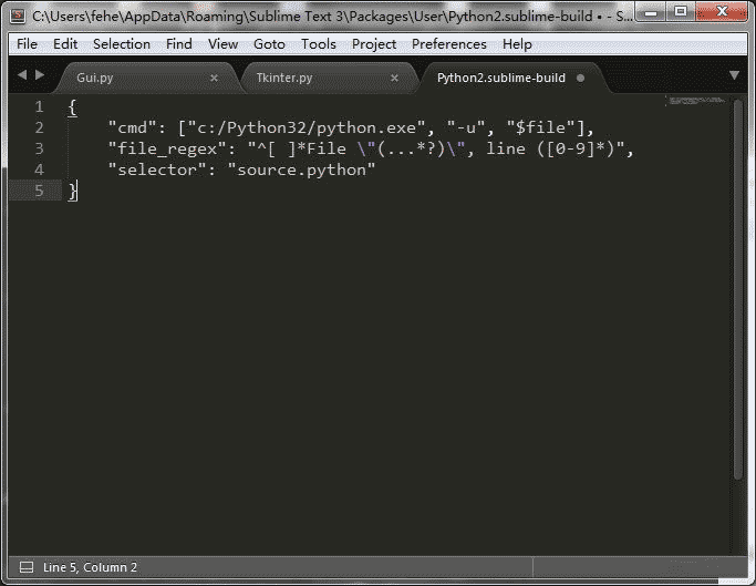 Winrar打開C:/Program Files/Sublime Text 3/Packages/Python.sublime-package,找到Python.sublime-build,在"file_regex"后面加入一行,如下:
