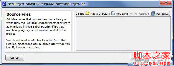 8、在向導的“源文件”頁面中,通過單擊添加目錄或添加文件將源文件添加到項目。
