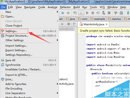 1、進入到了android studio的界面中之后,進行點擊菜單中的file的選項菜單。