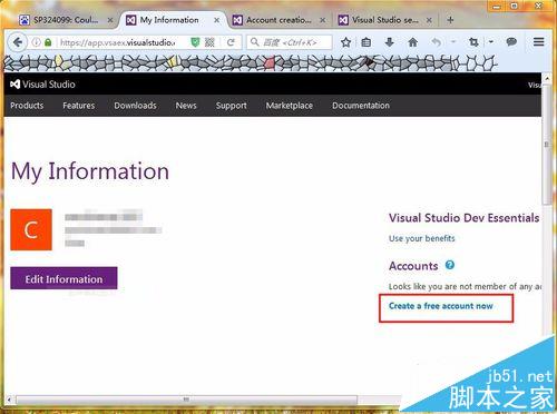 2、我們可以先進入vs官網進行登錄,然后選擇“Create a free account now”。