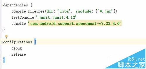 2、在library的buld.gradle最后面添加 :configurations { debug release}