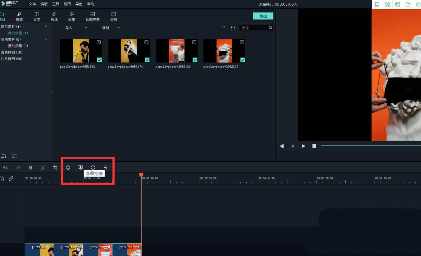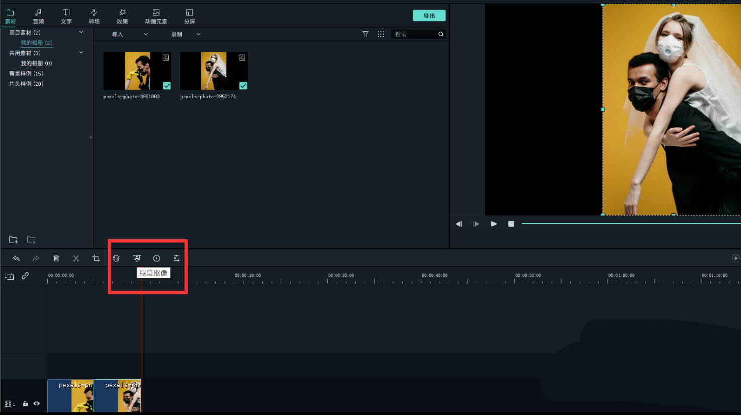 2、然后點擊綠幕摳像按鈕調出設置框。