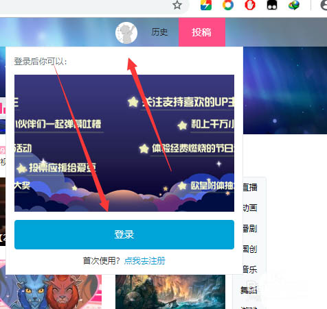2、這時(shí)點(diǎn)擊上方的灰色頭像登錄自己的B站賬號(hào)