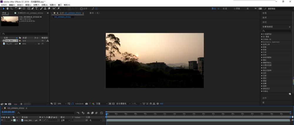 3、將視頻拖拽到最左下方的一欄中(這時(shí)AE會(huì)自動(dòng)生成合成,視頻已經(jīng)進(jìn)入到合成之中,我們將在這里操作視頻)。