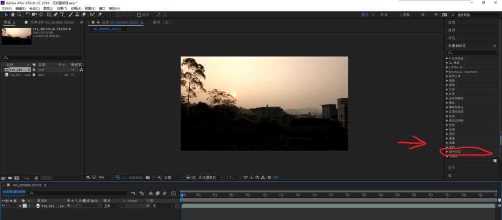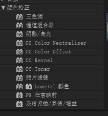 5、然后點(diǎn)擊顏色矯正的小三角形,找到三色調(diào)將其拉拽到左下方的視頻一行中
