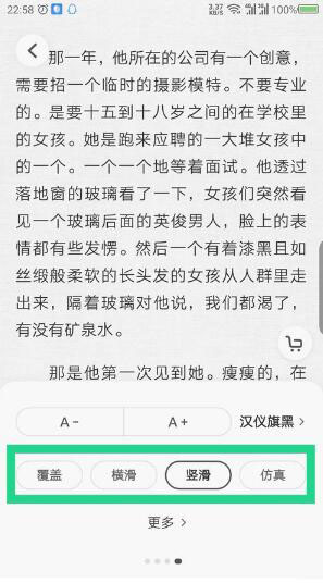 能看到翻頁模式設置,一共有四個翻頁模式可以選擇。如圖
