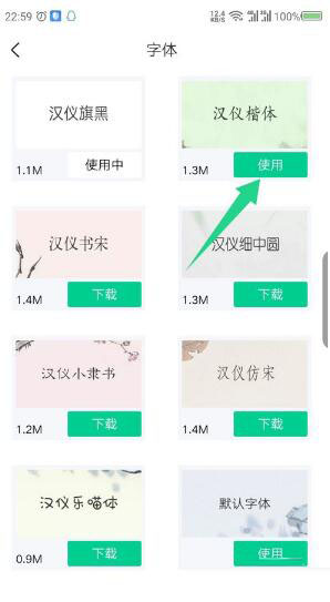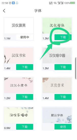 在打開的字體界面,選擇要使用的字體,先點擊下載。如圖