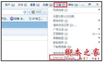 a. 方法:打開瀏覽器的“工具” -> “Internet選項”,如下圖所示。